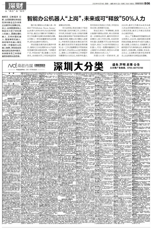 南都讯 记者程洋 日前,达观数据和深创投在深圳联合主办未来企业数字化发展论坛。会上,达观数据创始人陈运文介绍了材料录入机器人、票据处理机器人、文档纠错机器人、智能审核机器人、自动写作机器人等五大新一代