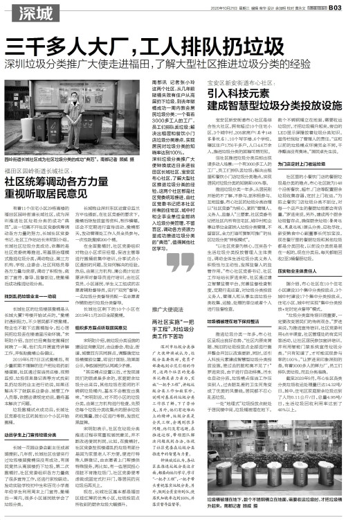 南都讯 记者张小玲 这两个社区,从几年前撤桶失败有住户从高层扔下垃圾,到去年撤桶成功一周内教会居民垃圾分类;一个有着3000多工人的工厂,员工们排队丢垃圾;解决出租屋和餐饮小门店垃圾分类难点,实现居民