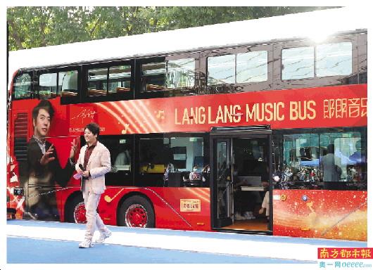 特别定制的“郎朗音乐主题巴士”。 南都记者 赵炎雄 摄