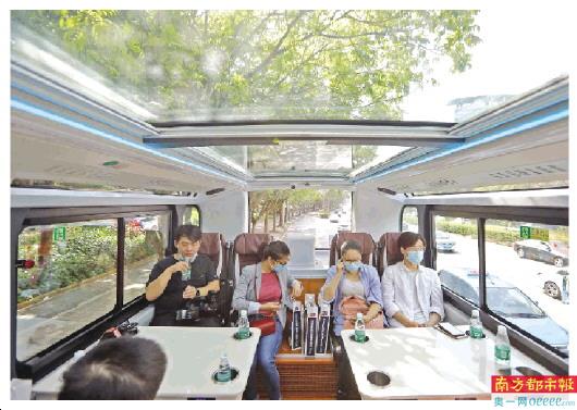 “每个座位前都配备了中英日法等8种语言的语音导览。在车内尾部设有特殊的展柜,展示‘红胖子’相关的文创产品。”据深圳巴士集团相关工作人员介绍。此次深圳巴士集团共投放10台全景天窗双层巴士,其中两台为特别定制的巴士,一台是以科技为主题的“科技巴士”,一台是与国际钢琴大师郎朗合作推出的“郎朗音乐主题巴士”。