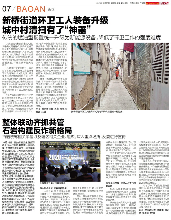新桥街道环卫工人装备升级 城中村清扫有了“神器”
