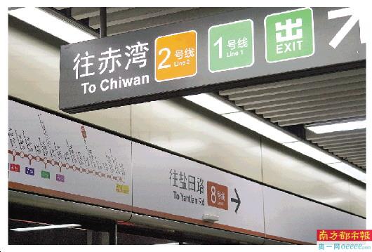 深圳地铁回应称,2号线与8号线将贯通运营,因此两条线路车站中“2号线新秀方向”的导向标识统一改为“8号线盐田路方向”,“2号线赤湾方向”的导向标识则保留不变。深圳地铁表示,已通过自媒体平台、媒体提前宣传,并加强车站显示屏、广播的配合指引,同时加强工作人员及义工的现场引导。市民乘客如需帮助可咨询车站工作人员。