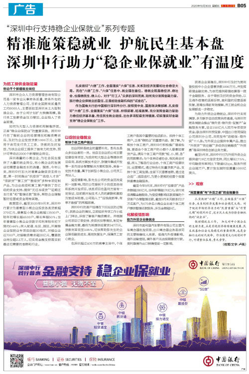 精准施策稳就业 护航民生基本盘 深圳中行助力“稳企业保就业”有温度