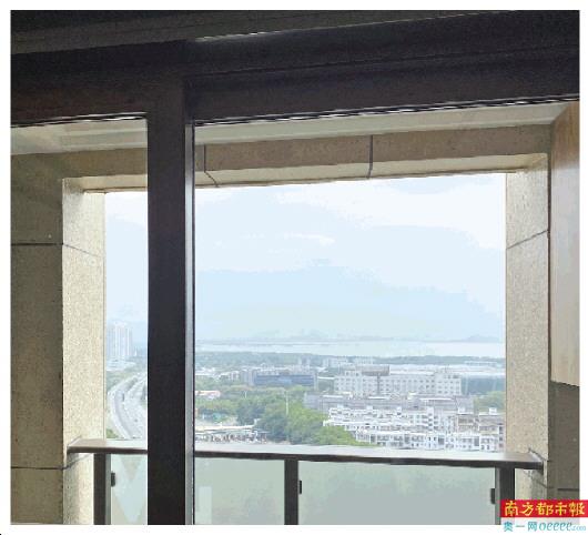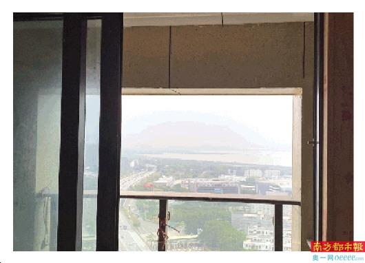 张女士所购的25楼房间的阳台,上方横梁阻挡明显。
