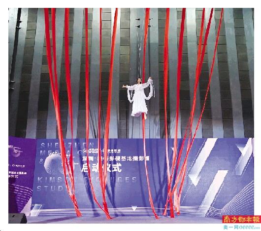白衣飘飘,一袭白衣女子飞舞而来,随着红丝带从天而降……当日的启动仪式特别采用影视作品中常见的吊威亚形式创意揭幕。记者了解到,该影视基地规划建设10座现代数字化影视摄影棚。一期规划建设的两座摄影棚面积分别为2000平方米和3000平方米。目前,现已建成2000平方米、棚高24米,并符合8k标准拍摄需求的摄影棚。此摄影棚不仅能同期录音、承接医院、公检法机关等多种场景实景棚,更是配备拟音室、初剪室、服化道具间和百人剧组餐厅等多功能空间,实现了产业服务的全方位覆盖,可满足包括大规模置景电影拍摄和综艺节目录制需求。