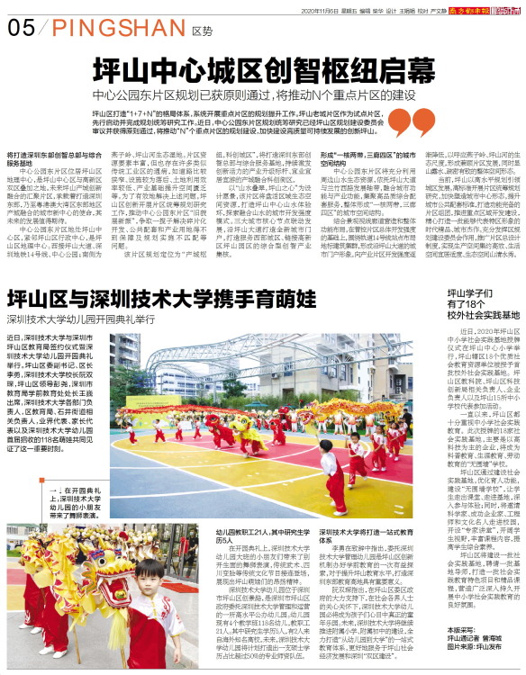 近日,深圳技术大学与深圳市坪山区教育局签约仪式暨深圳技术大学幼儿园开园典礼举行。坪山区委副书记、区长李勇,深圳技术大学校长阮双琛,坪山区领导彭尧,深圳市教育局学前教育处处长王巍出席,深圳技术大学各部门