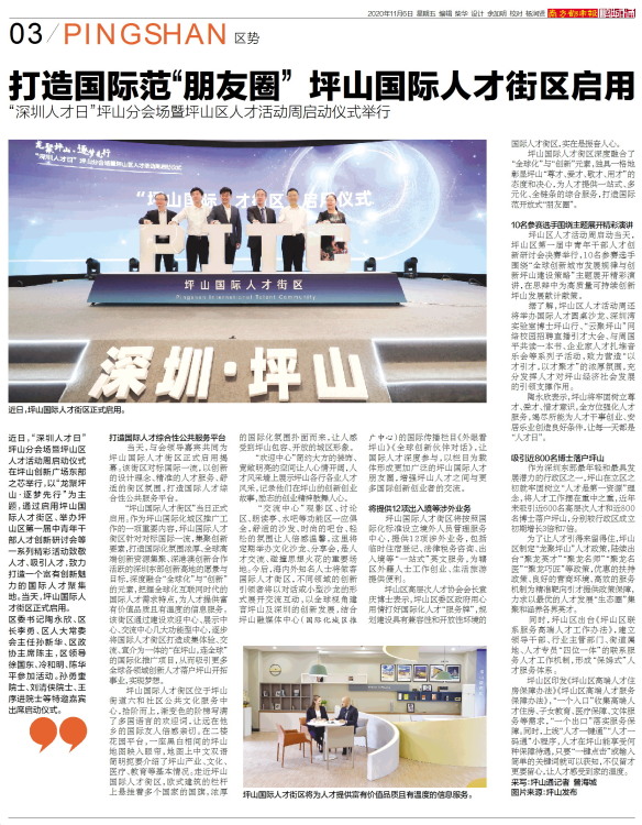 近日,“深圳人才日”坪山分会场暨坪山区人才活动周启动仪式在坪山创新广场东部之芯举行,以“龙聚坪山·逐梦先行”为主题,通过启用坪山国际人才街区、举办坪山区第一届中青年干部人才创新研讨会等一系列精彩活动致
