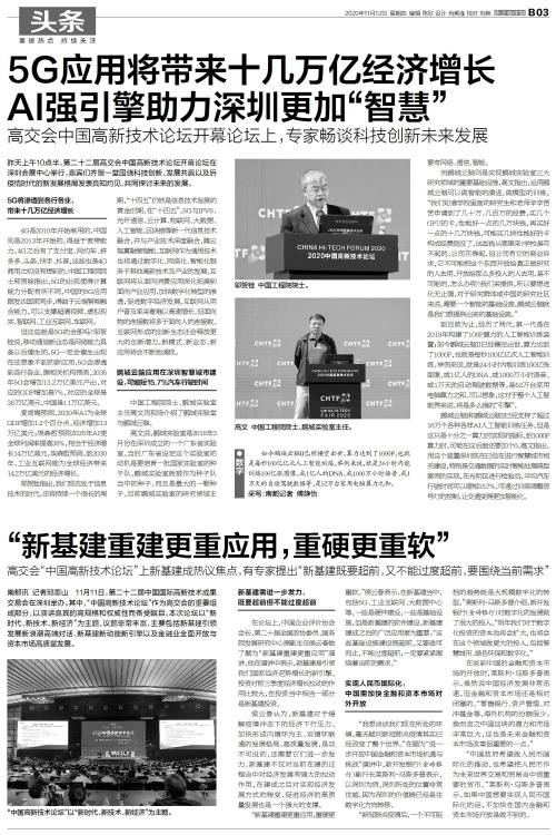 南都讯 记者邱墨山 11月11日,第二十二届中国国际高新技术成果交易会在深圳举办。其中,“中国高新技术论坛”作为高交会的重要组成部分,以演讲嘉宾的高规格和权威性而备受瞩目。本次论坛以“新时代、新技术、