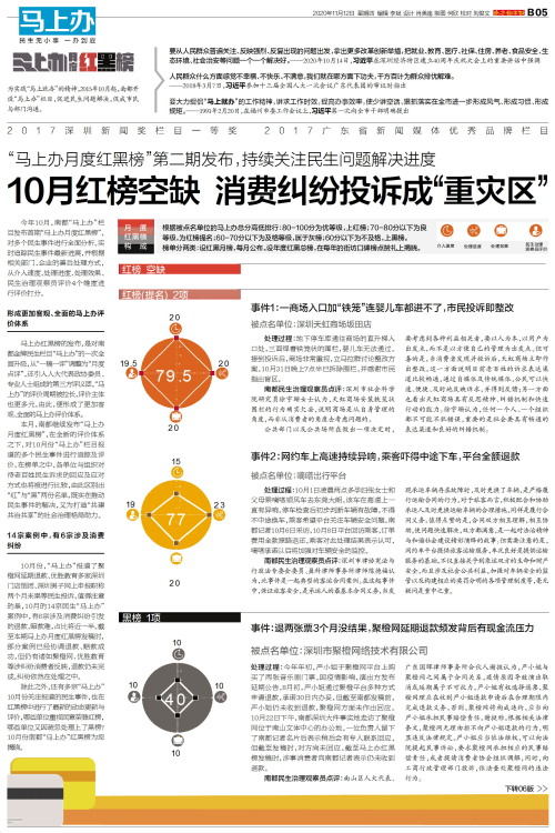 今年10月,南都“马上办”栏目发布首期“马上办月度红黑榜”,对多个民生事件进行全面分析。实时追踪民生事件最新进展,并根据相关部门、企业的善后处理方式,从介入速度、处理进度、处理效果、民生治理观察员评价