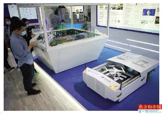 直升机停机坪听多了,属于无人机的机场,听过吗?现场,深圳市深水水务咨询有限公司介绍了无人机智慧监管平台,其中,在一个长宽不足2米的无人机自动值守机场里,设有一块类似二维码的方块,无人机可以此为识别点进行起飞、降落操作,停在二维码内的无人机,可自动进行充电。