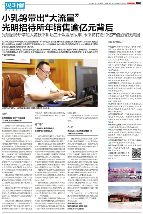 1991年,黄钦平大学毕业从梅州来到光明农场,下车后马上有些失落,第一感觉是这里还不如老家繁华。尽管如此,他在这里一待就是30年,这期间,光明经历了翻天覆地的变化,他也从新美中学的老师成为光明招待所掌