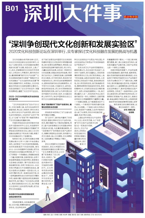 文化科技融合有何新态势?近日,2020文化科技创新论坛在深圳举行,论坛以“云端与现场:文化科技融合发展的挑战与机遇”为主题,来自北京、上海、广州、武汉、济南等地的文化科技艺术学领域人士两百余人齐聚深圳