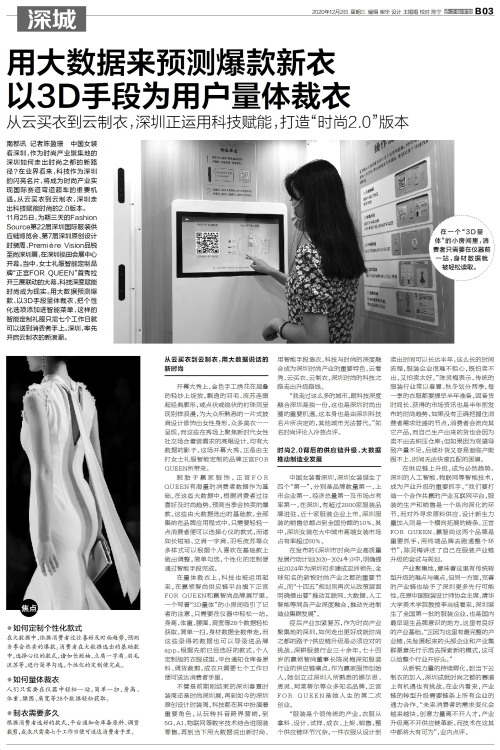 南都讯 记者陈盈珊 中国女装看深圳,作为时尚产业聚集地的深圳如何走出时尚之都的新路径?在业界看来,科技作为深圳的闪亮名片,将成为时尚产业实现国际赛道弯道超车的重要机遇。从云买衣到云制衣,深圳走出科技赋