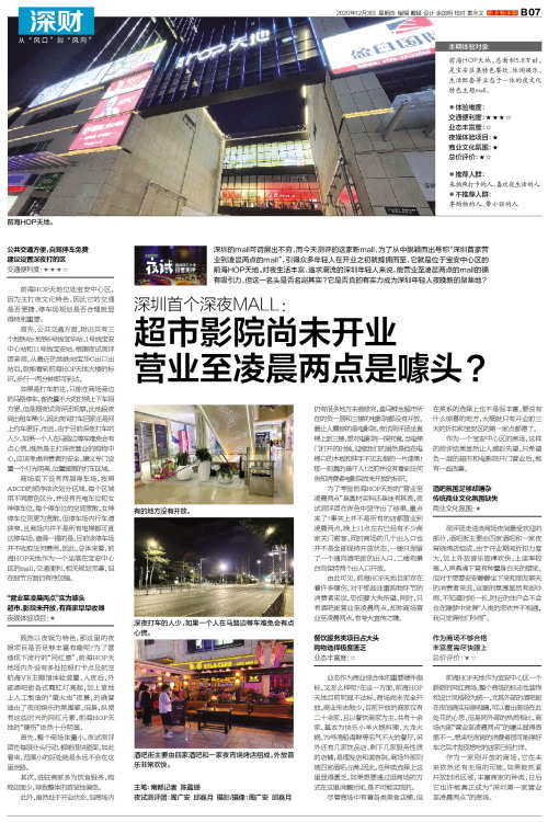 前海HOP天地。 有的地方没有开放。 深夜打车的人少,如果一个人在马路边等车难免会有点心慌。