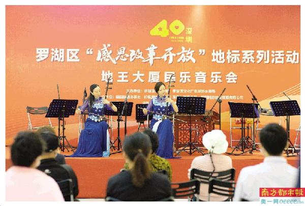11月27日,由罗湖区委宣传部、罗湖区文化广电旅游体育局共同主办的罗湖区“感恩改革开放”地标系列活动——地王大厦主题民乐音乐会及“深圳地标拍罗湖”摄影展览在地王大厦举办。