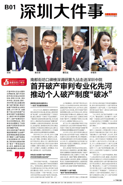 打造市场化法治化国际化营商环境,离不开完善的市场主体退出和拯救机制。早在1993年,深圳市中级人民法院(简称:深圳中院)成立全国法院首个破产审判庭,率先开始破产领域专业化审判道路。2019年1月,全国