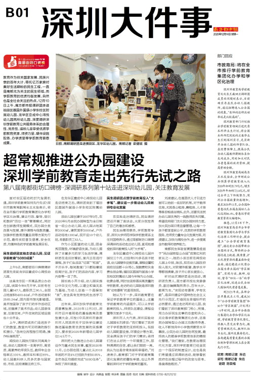 教育作为攸关国家发展、民族兴衰的百年大计,寄托亿万家庭对美好生活期盼的民生工程,一直是南都尤为关注的民生领域。而学前教育的优质均衡发展,自然也是全社会关注的热点。12月10日上午,南方都市报调研团走进