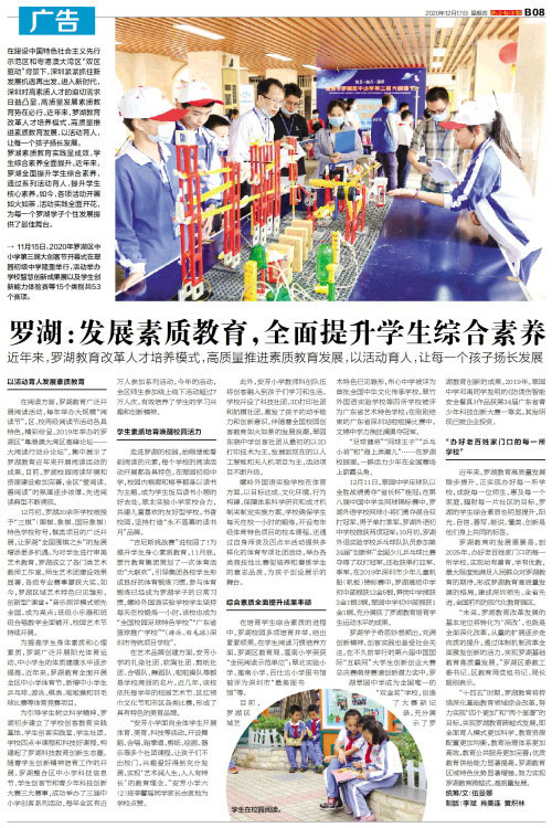 在建设中国特色社会主义先行示范区和粤港澳大湾区“双区驱动”背景下,深圳紧紧抓住新发展机遇再出发。进入新时代,深圳对高素质人才的迫切需求日益凸显,高质量发展素质教育势在必行。近年来,罗湖教育改革人才培养
