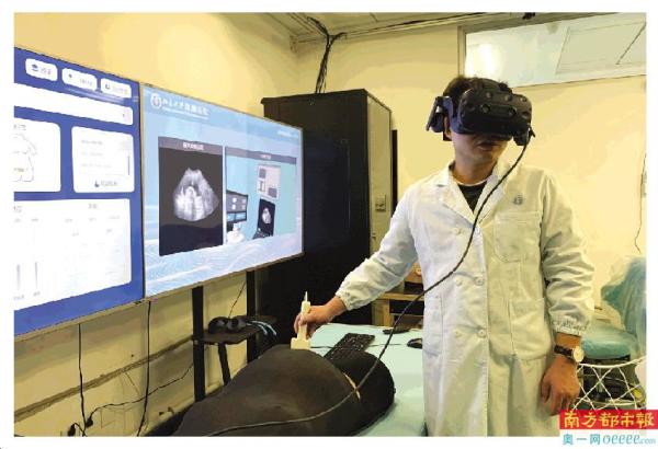 在北大深圳医院虚拟现实实验室,医生正在使用VR超声教学。