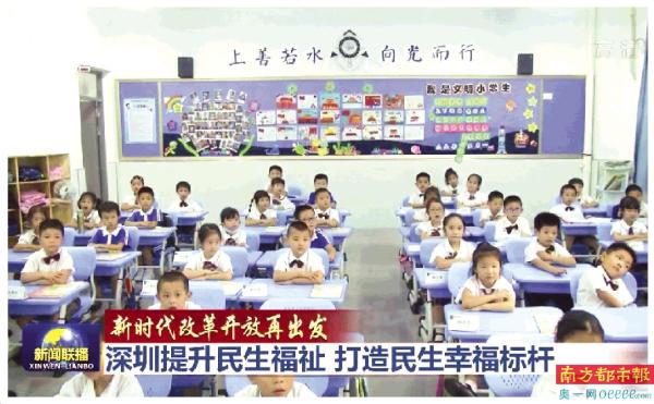 一年级的小学生们端正地坐在新建成的教室里,认真跟随讲台上的老师朗读课文——这是日前央视《新闻联播》画面里的一个镜头,主持人播报说:“这所学校1600多个学位中,有55.5%给了非深圳户籍学生。教育优先,不是一句空话。”