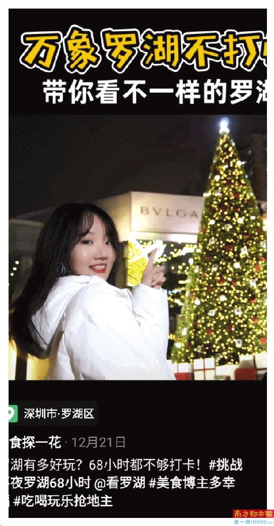 “食探一花”从小在深圳长大,罗湖是她青春时期的潮流指向标。这次#挑战不夜罗湖68小时的抖音全民任务视频中,她打卡了罗湖的东门、向西村等地,选择的店铺都是近年新开的网红店、年轻人会喜欢的有意思的地方。“罗湖在不断发展,城区面貌也在不断变化,希望通过视频带粉丝感受不一样的‘新罗湖’。”