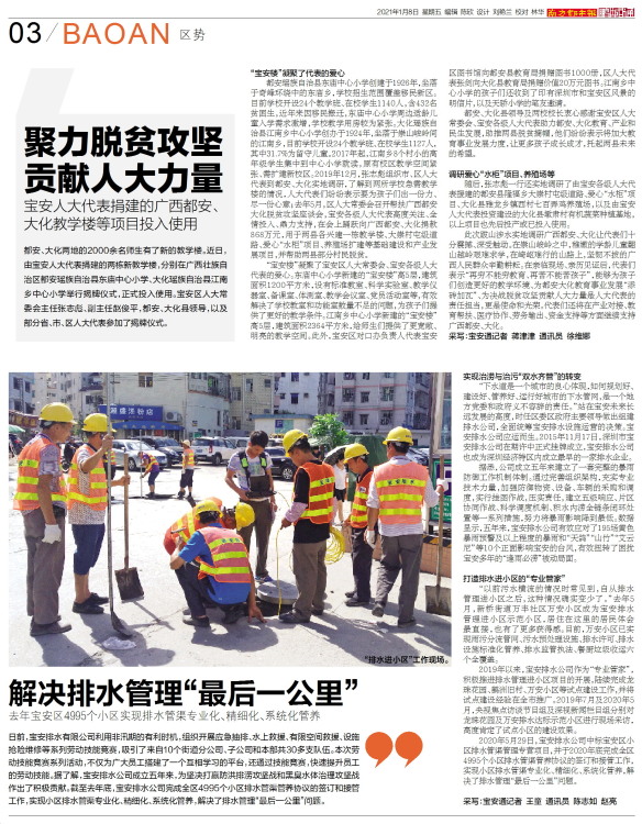 都安、大化两地的2000余名师生有了新的教学楼。近日,由宝安人大代表捐建的两栋新教学楼,分别在广西壮族自治区都安瑶族自治县东庙中心小学、大化瑶族自治县江南乡中心小学举行揭牌仪式,正式投入使用。宝安区人