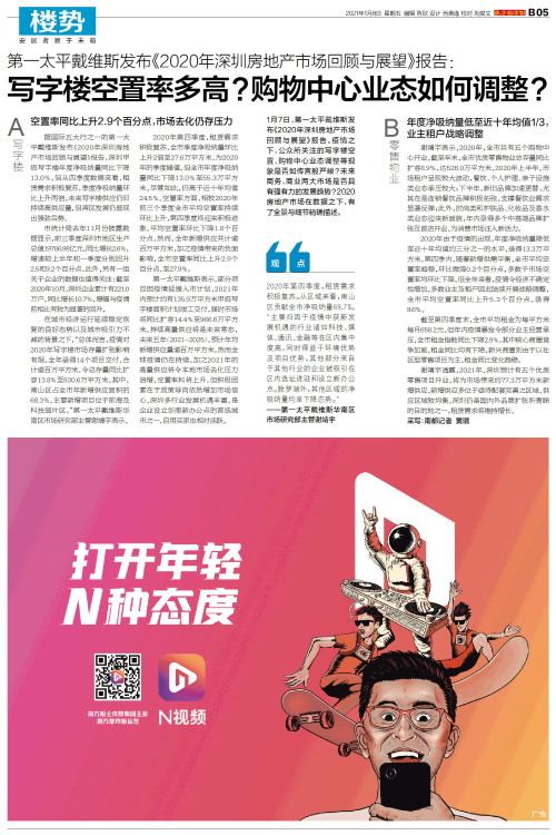 1月7日,第一太平戴维斯发布《2020年深圳房地产市场回顾与展望》报告。疫情之下,公众所关注的写字楼空置、购物中心业态调整等现象是否如传言般严峻?未来商务、商业两大市场是否具有强有力的发展趋势?202