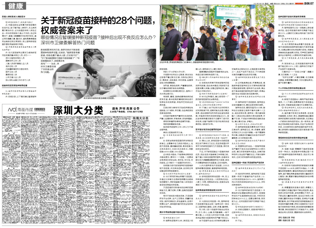新冠疫苗深圳开打后,很多市民对于新冠疫苗接种有很多问题,比如说,“我家爸爸有糖尿病,但他也属于重点人群,打还是不打”、“打了新冠疫苗是不是就不用测核酸了”、“听说病毒变异了,这疫苗还有用吗”……为此,