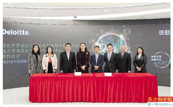 1月20日,罗湖区政府与德勤签署战略合作框架协议,共同创立深港青年创新合作发展中心,推动深港人才交流合作。
