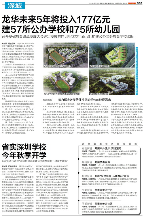 据了解,广东实验中学深圳学校(原深圳市第十七高中)是由深圳市教育局与广东实验中学合作创办的直属于深圳市教育局的公办学校。学校于2020年6月开工建设,建设内容包括教学用房、教辅用房、教职工宿舍、地下停车库、立体运动空间等,项目用地面积70342平方米,总建筑面积12.65万平方米。高中部分校舍计划于2021年5月底建成,2021年9月开始投入使用。