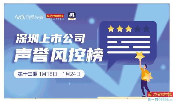 深圳上市公司声誉风控榜第十三期(1月18日-24日)
