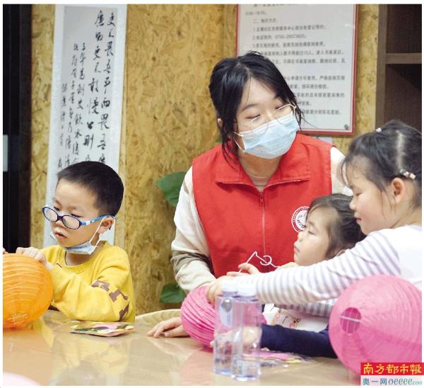 龙华龙塘社区党群服务中心的寒假学校,孩子们从课业辅导课转到上手工课的“教室”,开始制作小灯笼。 南都记者 霍健斌 摄