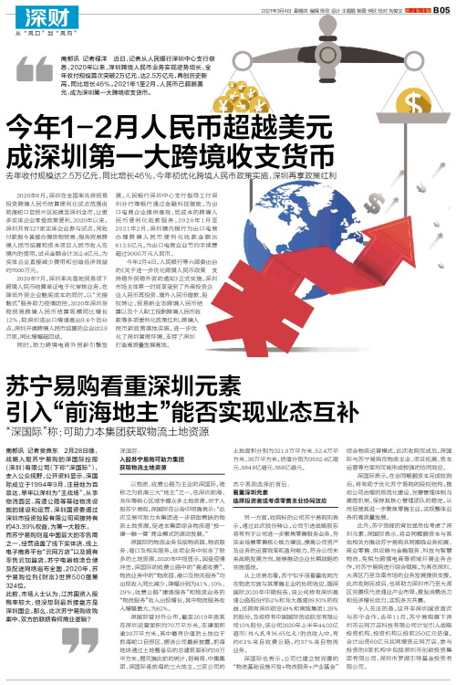 此外,苏宁选择的背后显然也考虑了深圳元素。深国际表示,将会同鲲鹏资本与其他相关方推动苏宁易购共同围绕业务拓展、商业零售、供应链与金融服务、科技与智慧物流、免税与跨境电商等领域开展业务合作,对苏宁易购进行综合赋能,为其在深圳、大湾区乃至华南市场的业务发展提供支援。此次收购完成后,也将助力深圳市乃至大湾区完善现代流通业产业布局,激发消费活力和经济增长动力,实现多方共赢。