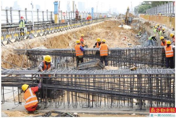 3月3日,记者在滨海大道(总部基地段)交通综合改造项目现场看到,工人正在忙碌。 南都记者 赵炎雄 摄