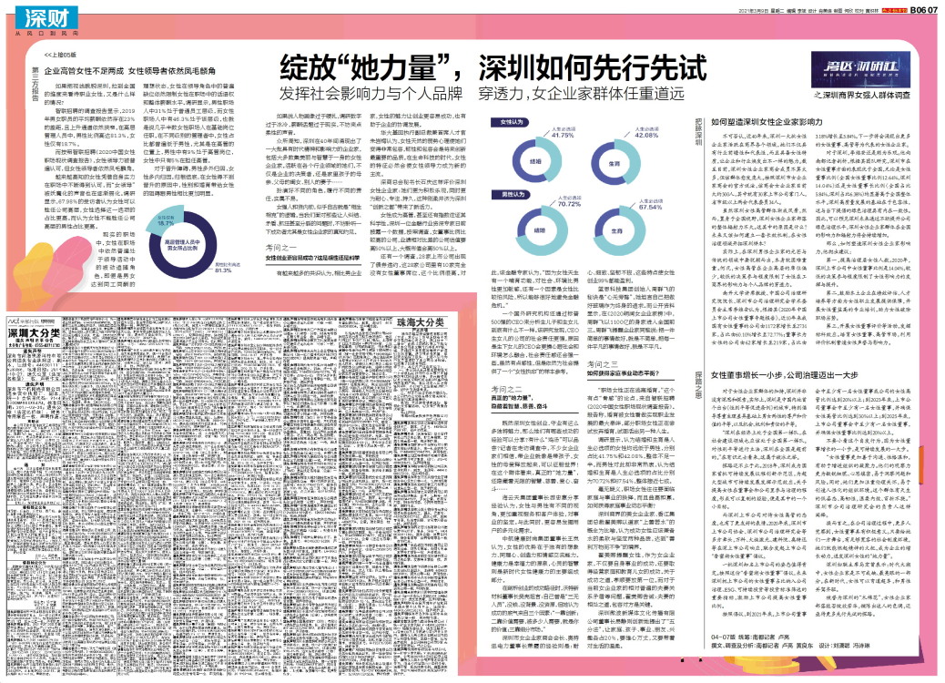 如果说人物画像过于硬扎,调研数字过于冰冷,薪酬话题过于现实,不妨来点柔性的声音。众所周知,深圳在40年间涌现出了一大批具有时代精神和影响力的企业家,包括大多数集美丽与智慧于一身的女性企业家。活跃在各个