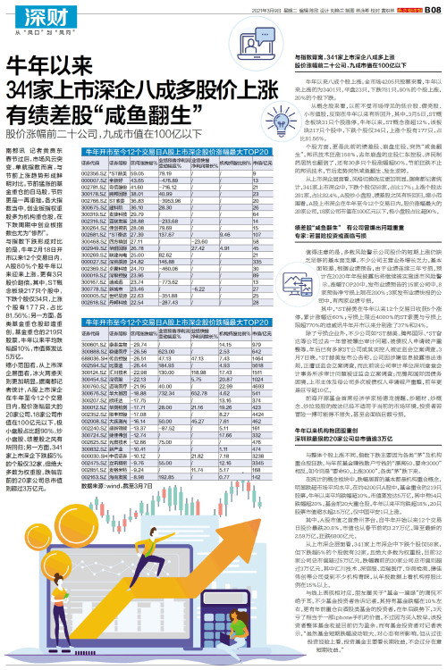 牛年以来 341家上市深企八成多股价上涨 有绩差股“咸鱼翻生”