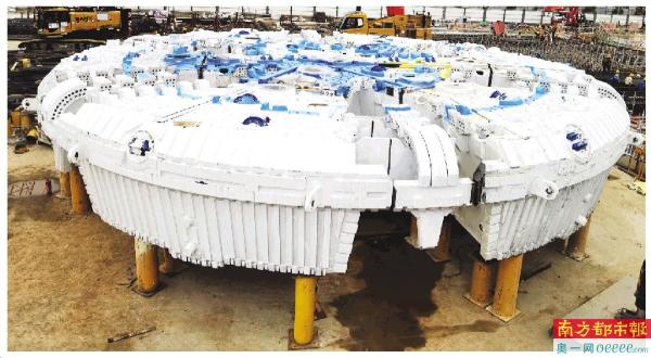 南都讯 记者张艳丽 备受关注的妈湾跨海通道建设即将驶入快车道。3月11日,记者走访项目2标一工区现场了解到,项目正在进行盾构始发井施工,直径达15.53米的盾构刀盘已经进场组装。预计今年上半年,项目海底隧道将开始双向掘进。