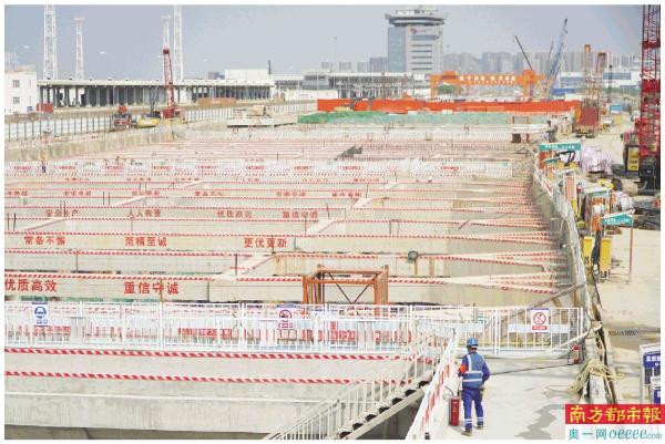 2021年3月11日,深圳大铲湾码头,妈湾跨海通道盾构始发井已初见规模,盾构机也正在进行组装准备下井。 南都记者 赵炎雄 摄
