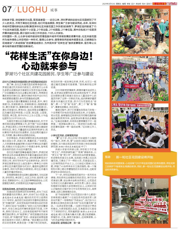 时尚亲子园、诗经楚辞文化园、军民建家园……近日以来,深圳罗湖的这些社区花园受到了不少人的关注。不同于其他社区花园,他们可是由居民、学生等广泛参与建设而成。去年,在深圳市城市管理和综合执法局《美丽深圳社