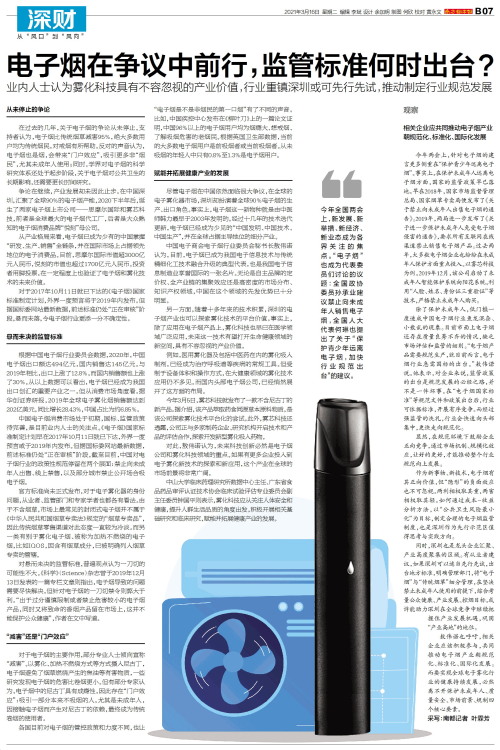 今年全国两会上,新发展、新举措、新经济、新业态成为各界关注的焦点。“电子烟”也成为代表委员们讨论的议题:全国政协委员孙承业建议禁止向未成年人销售电子烟,全国人大代表何琳也提出了关于“保护青少年远离电子