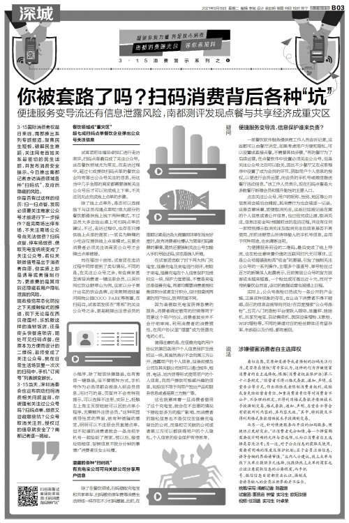 3·15消费警示系列之43·15国际消费者权益日来临,南都推出系列专题报道,聚焦民生短板,破解民生难题,关注同老百姓关系最密切的民生话题,并发布消费安全提示。今日推出南都记者走访消费领域各种“扫码坑”