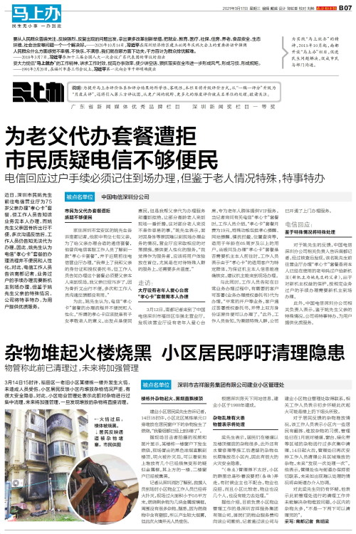 为老父代办套餐遭拒 市民质疑电信不够便民