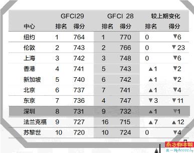 中国内地有12个城市进入到本期GFCI的评价中,上海、北京、深圳进入到全球前十,广州、成都、青岛也进入到全球前五十行列。