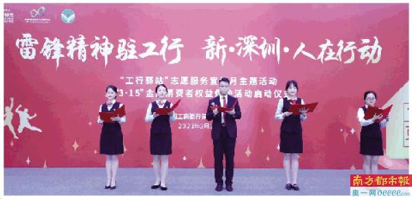 2021年3月初,工行深圳市分行“新·深圳·人—工行驿站”志愿服务月活动暨“3·15”消费者权益保护日活动启动仪式在工行深圳市分行营业部举行,并通过现场直播的方式与各网点员工共同见证。作为“您身边的银行”,工行深圳市分行将持续做好客户金融服务工作,多层次打造网点“便民、人文、普惠”的“新·深圳·人—工行驿站”,进一步弘扬新时代雷锋精神,筑牢高质效客户服务之本,彰显国有大行的责任担当。