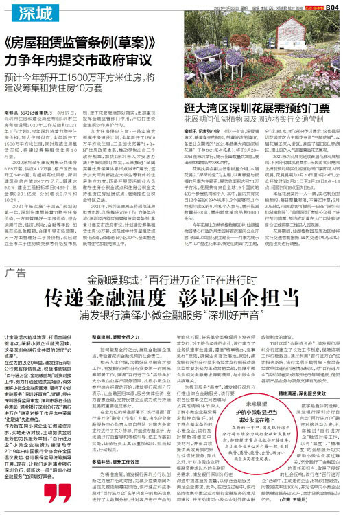 专题让金融活水精准滴灌,打通金融供需堵点,缓解小微企业融资困难,这是深圳金融行业共同的时代“必修课”。在过去的2020年里,浦发银行深圳分行克服疫情挑战,积极推动辖区“百行进万企,金融暖鹏城”融资