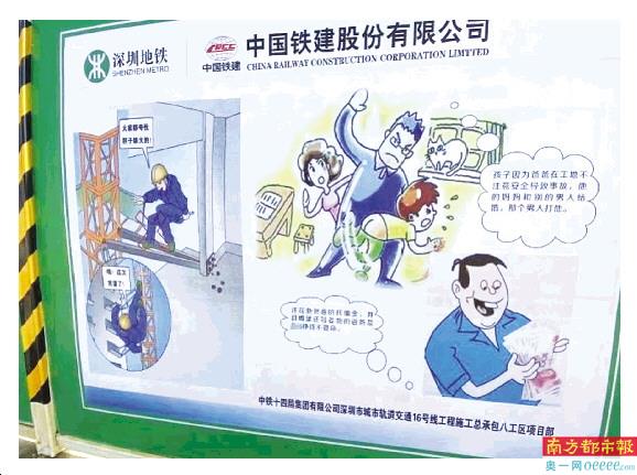 南都讯 见习记者覃仕林 记者焦明梁 近日,一张深圳地铁建设工地的安全宣传漫画图流传到网上,引发网友热议。南都记者从深圳地铁建设集团相关工作人员处了解到,该漫画为工地内部宣传画,并非对外,由16号线工程项目部招标广告公司设计制作。中铁十四局深圳城市轨道交通16号线工程项目部(以下简称项目部)回应,目前漫画已经撤下。