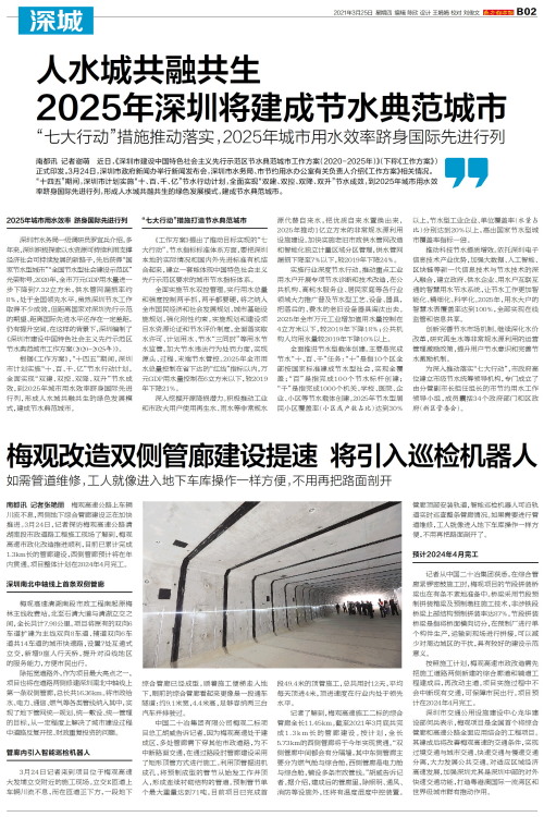 南都讯 记者谢萌 近日,《深圳市建设中国特色社会主义先行示范区节水典范城市工作方案(2020-2025年)》(下称《工作方案》)正式印发。3月24日,深圳市政府新闻办举行新闻发布会,深圳市水务局、
