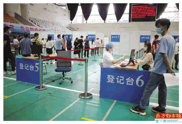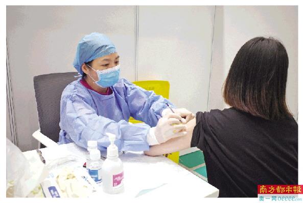根据国家、广东省统一部署,深圳现在面对18-59岁中国内地居民开展新冠疫苗免费接种工作。目前除了社康中心,深圳还新增了21家大中型临时接种点。新增临时接种点后,市民接种疫苗情况如何?3月29日、30日下午,南都记者来到大中型临时接种点——罗湖区黄贝路党群服务中心、南山区文体中心,现场直击市民接种疫苗情况。在疫苗接种现场,南都记者看到,市民只需带上身份证,就可在临时接种点接种疫苗。