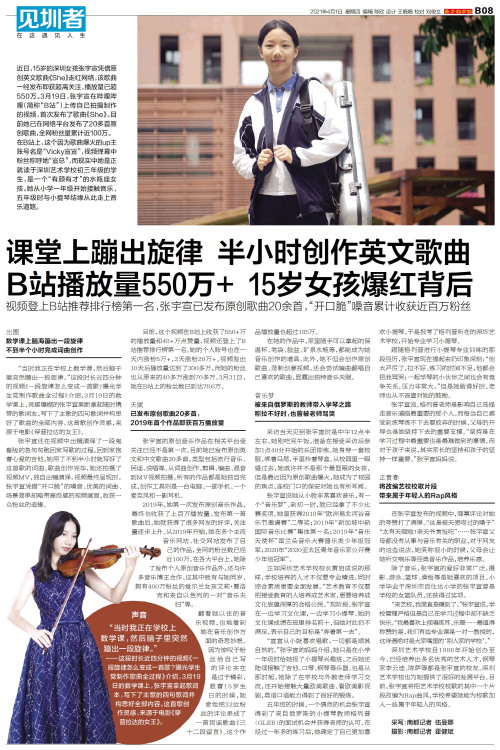 课堂上蹦出旋律 半小时创作英文歌曲 B站播放量550万+ 15岁女孩爆红背后