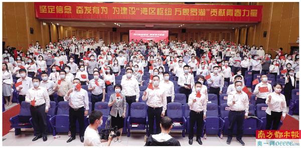 现场的“沉浸式”党课让红色文化直抵人心、“圈粉”无数,尤其是当《我和我的祖国》旋律一响起,现场人员一同起立,挥舞着手中的国旗,共同祝愿祖国繁荣昌盛。“在数首红歌的演唱中我们一起回顾党史、了解党史、学习党史,听了这些歌曲让我心潮澎湃,作为一名在基层一线工作的罗湖青年,我深受鼓舞和感动!”基层青年工作者李竞现场感慨,接下来,自己一定会以党史学习教育为契机,学好党史、积极为群众办实事、办好事,用优异的成绩为“湾区枢纽、万象罗湖”贡献罗湖青年的力量。